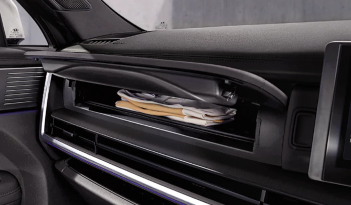 Interior the all-new SANTA FE yang premium dan luas dirancang dengan sempurna untuk meningkatkan kenyamanan serta memudahkan aktivitas Anda di dalam kabin, menjadikan setiap perjalanan sebuah pengalaman tak terlupakan.
